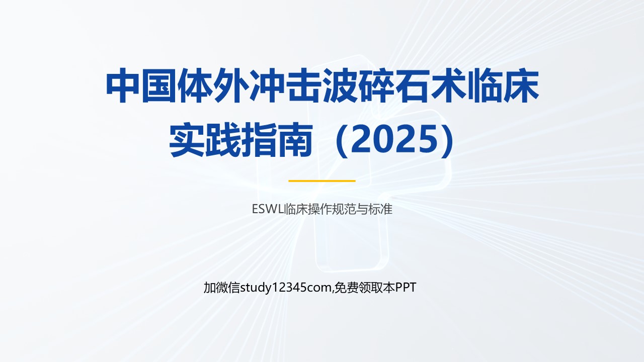 “中国体外冲击波碎石术临床实践指南(2025)PPT” 的相关文章