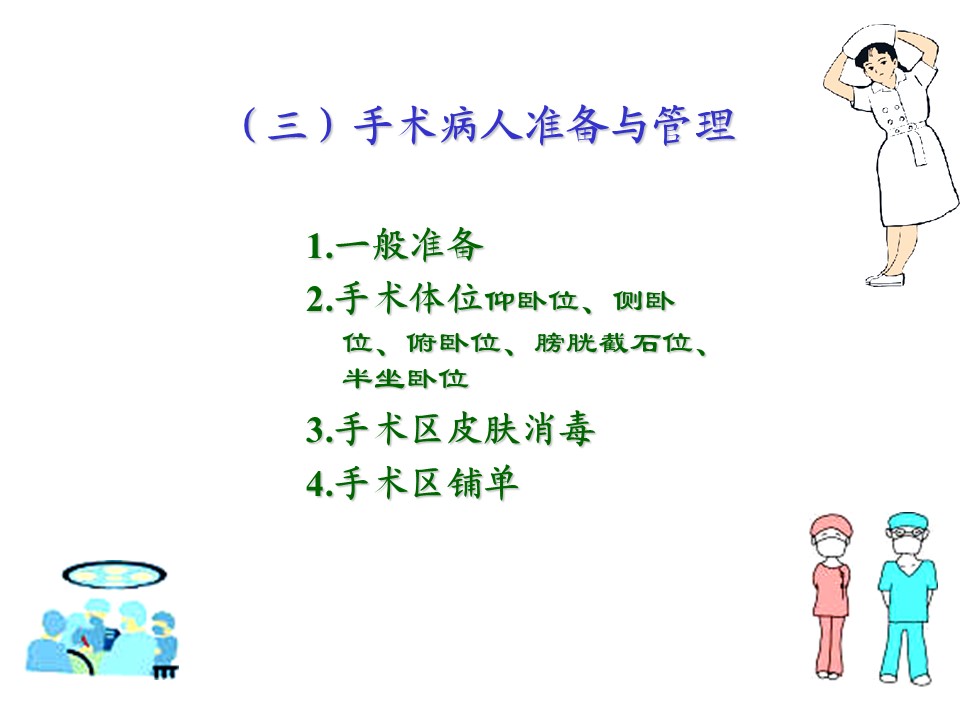 手术室护理1.手术室简介2.手术室器械3.常见手术体位4.手术室无菌技术操作...
