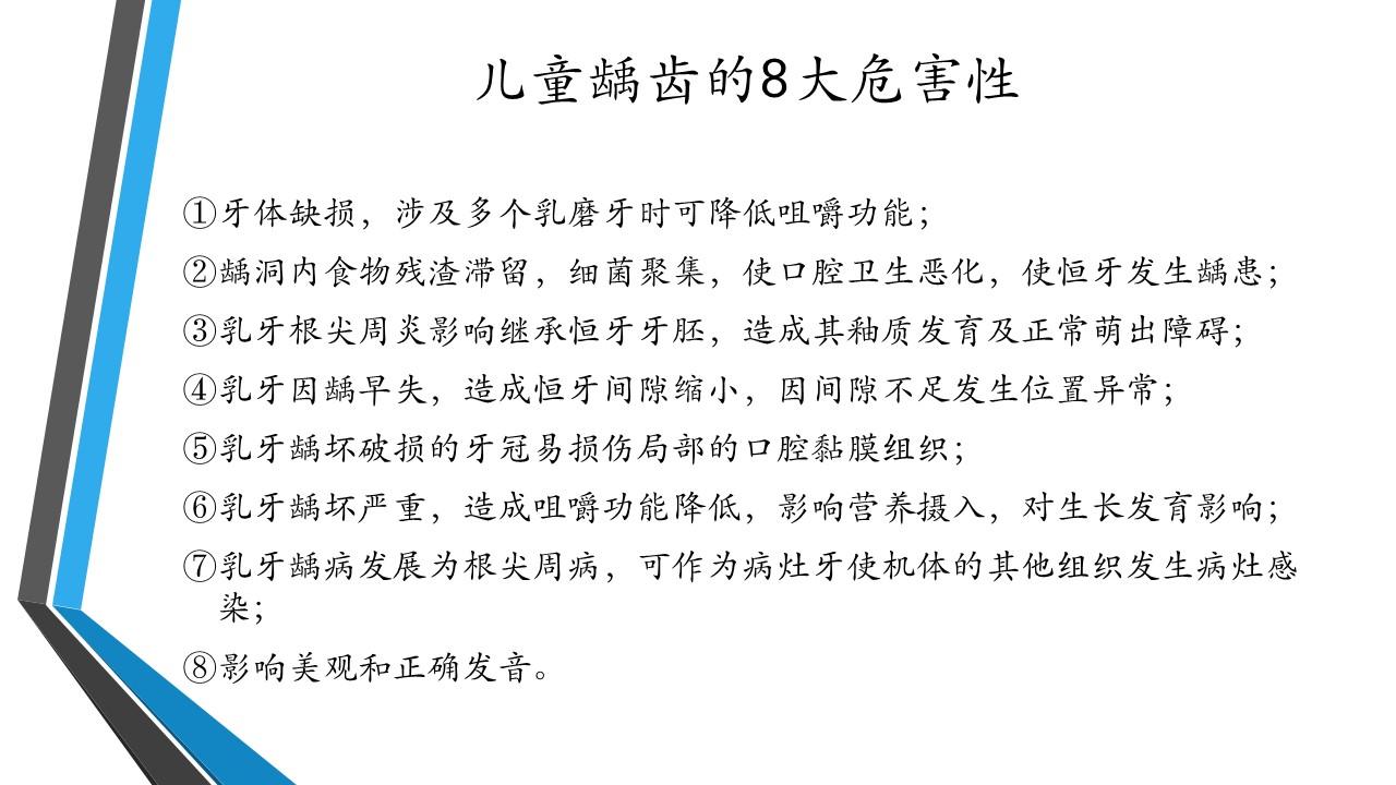 龋病即龋齿,俗称蛀牙,是细菌性疾病,可以继发牙髓炎和根尖周炎,甚至能引起牙槽骨和颌骨炎,其发展的最终结果是牙齿丧失。它是口腔主要的常见病,也是人类最普遍的疾病之一,世界卫生组织已将其与肿瘤和心血管疾病并列为人类三大重点防治疾病。